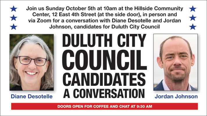 October 5th’s First Sunday meeting will feature two Duluth City Council Candidates